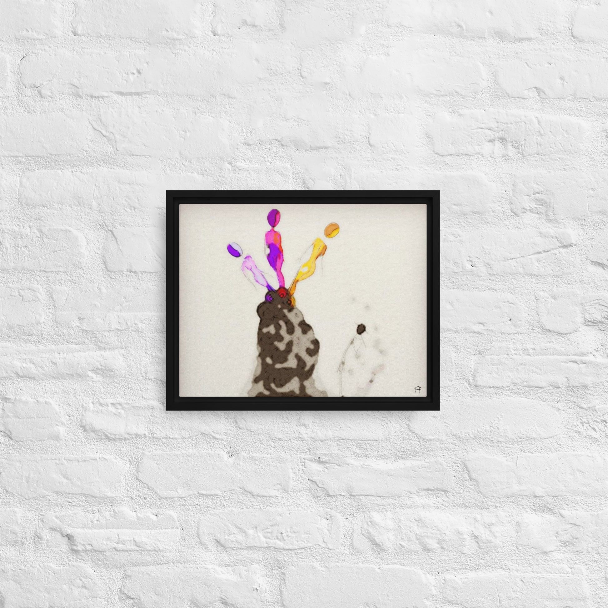 - The framed canvases with brown and black frames have a black inside around the canvas, and the canvases with white frames have a white inside around the canvas.
